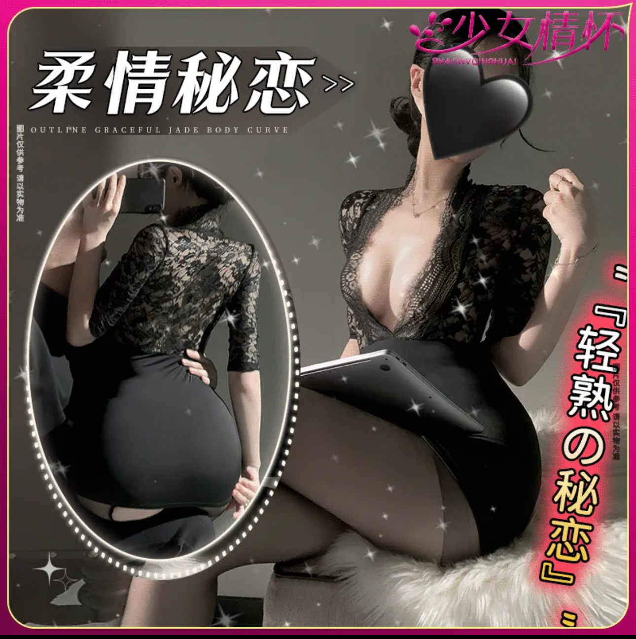 [霏慕]深V蕾丝性感包臀裙均码情趣制服内衣成人外卖6757