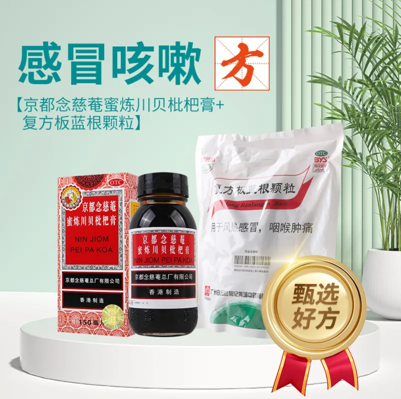 【感冒咳嗽】京都念慈菴蜜炼川贝枇杷膏+复方板蓝根颗粒