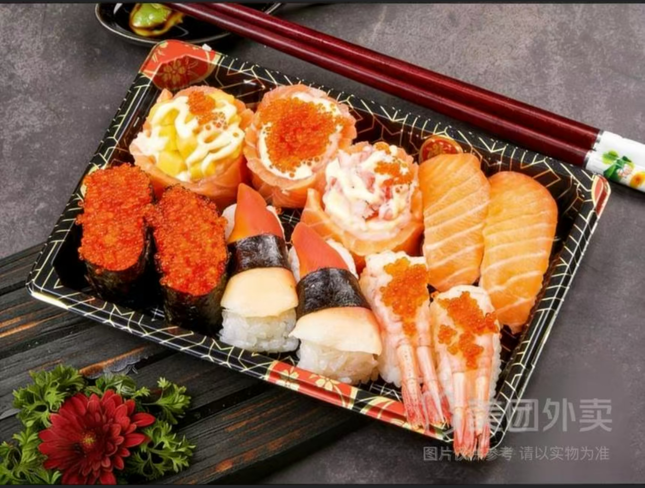 (生腌三拼)三文鱼6片+凤尾小甜虾+北极大甜虾