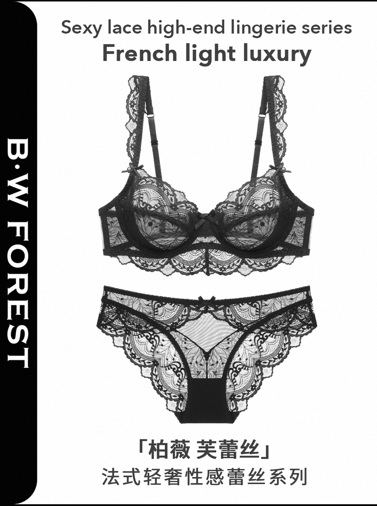维多利亚蕾丝性感内衣女内裤套装超薄款无痕大胸显小胸罩性感文胸
